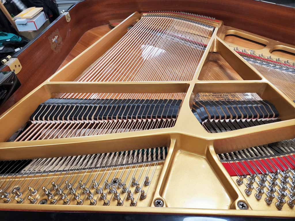 The steel strings mainly need to be replaced on a piano because they have rusted. This can be caused from moisture in the air, high humidity, the placement of piano in room and other factors. Once the strings are in this condition the piano cannot be tuned. It can also lead to other components being damaged inside the piano if not treated. Once the new strings are fitted the tone of the piano will greatly be enhanced!